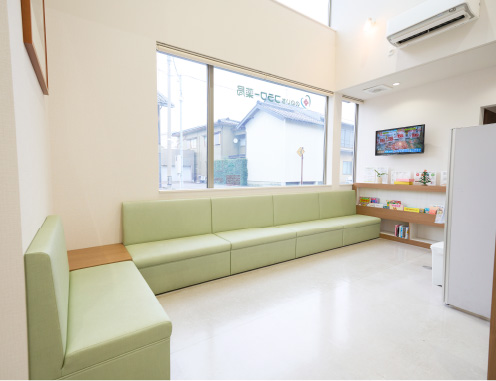 落ち着く色合いの待合室では心穏やかに過ごせる空間を提供しています。